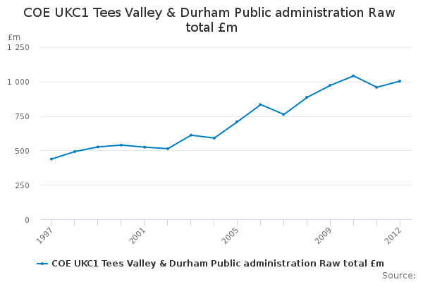 Download this time seriesCOE UKC1 Tees Valley & Durham Public administration Raw total £m