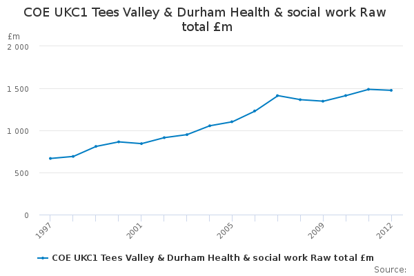 Download this time seriesCOE UKC1 Tees Valley & Durham Health & social work Raw total £m