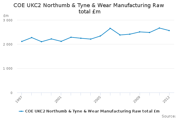 Download this time seriesCOE UKC2 Northumb & Tyne & Wear Manufacturing Raw total £m