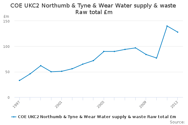 Download this time seriesCOE UKC2 Northumb & Tyne & Wear Water supply & waste Raw total £m