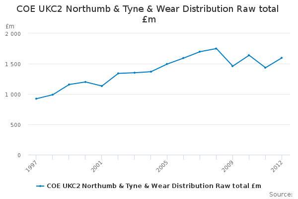 Download this time seriesCOE UKC2 Northumb & Tyne & Wear Distribution Raw total £m