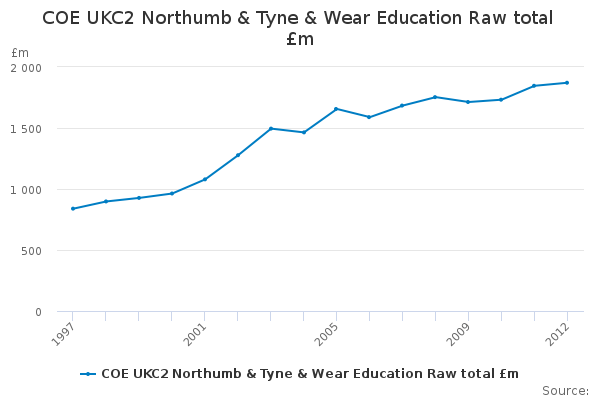 Download this time seriesCOE UKC2 Northumb & Tyne & Wear Education Raw total £m