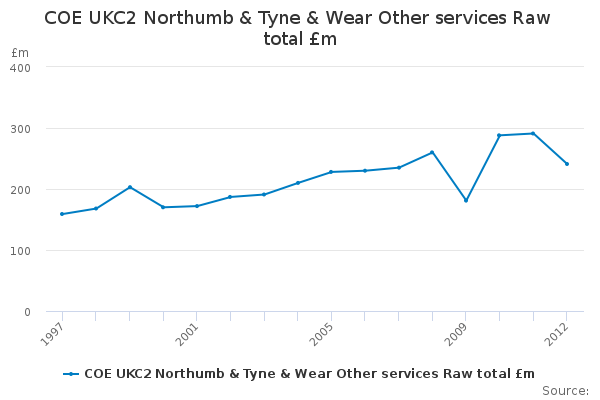 Download this time seriesCOE UKC2 Northumb & Tyne & Wear Other services Raw total £m