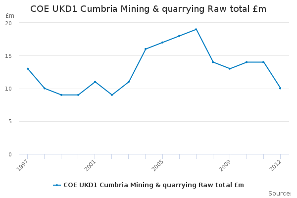 Download this time seriesCOE UKD1 Cumbria Mining & quarrying Raw total £m