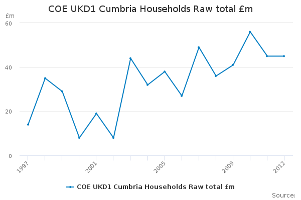 Download this time seriesCOE UKD1 Cumbria Households Raw total £m