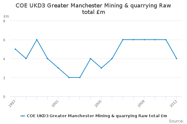 Download this time seriesCOE UKD3 Greater Manchester Mining & quarrying Raw total £m