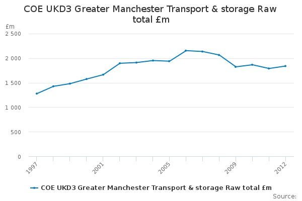 Download this time seriesCOE UKD3 Greater Manchester Transport & storage Raw total £m