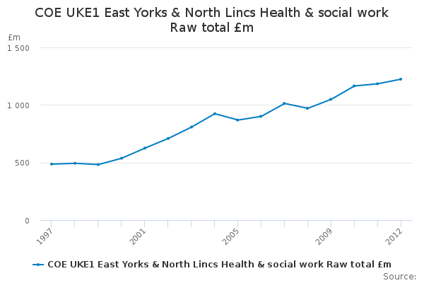Download this time seriesCOE UKE1 East Yorks & North Lincs Health & social work Raw total £m