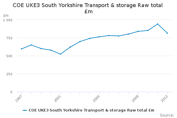Download this time seriesCOE UKE3 South Yorkshire Transport & storage Raw total £m