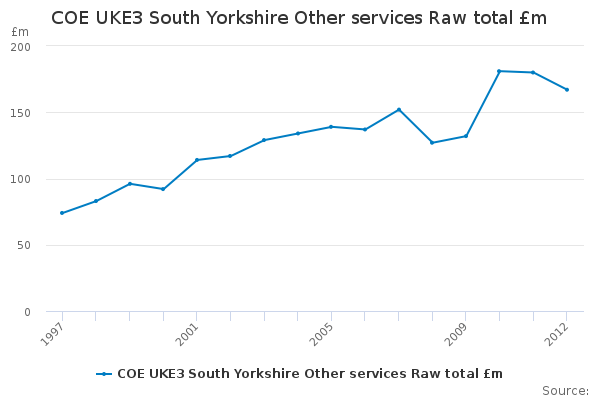 Download this time seriesCOE UKE3 South Yorkshire Other services Raw total £m