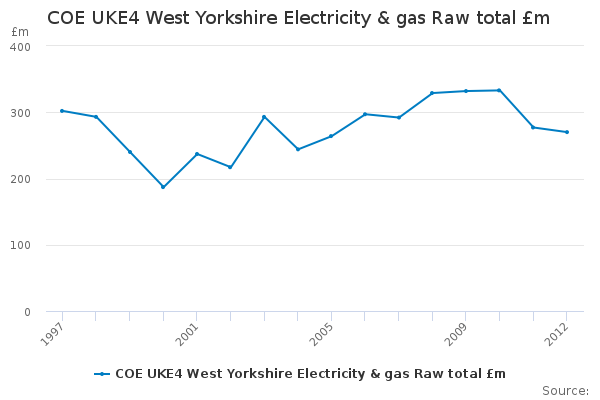 Download this time seriesCOE UKE4 West Yorkshire Electricity & gas Raw total £m