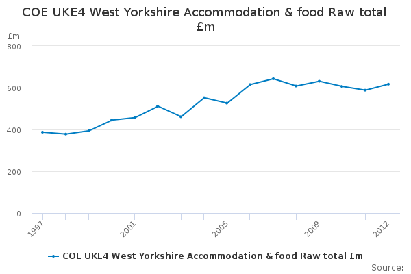 Download this time seriesCOE UKE4 West Yorkshire Accommodation & food Raw total £m