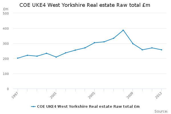 Download this time seriesCOE UKE4 West Yorkshire Real estate Raw total £m