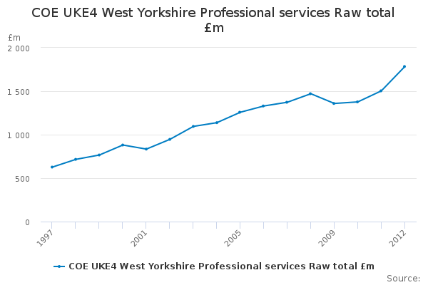 Download this time seriesCOE UKE4 West Yorkshire Professional services Raw total £m