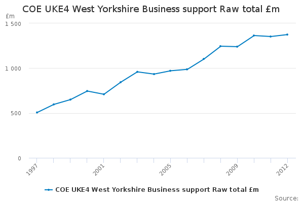 Download this time seriesCOE UKE4 West Yorkshire Business support Raw total £m