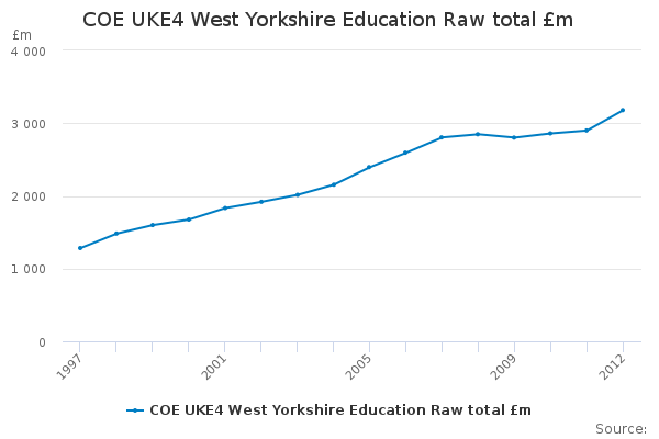 Download this time seriesCOE UKE4 West Yorkshire Education Raw total £m
