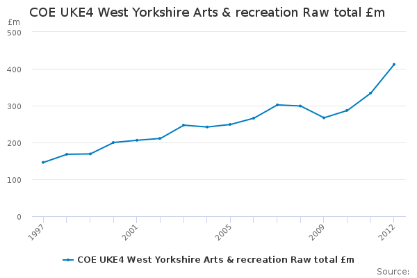 Download this time seriesCOE UKE4 West Yorkshire Arts & recreation Raw total £m