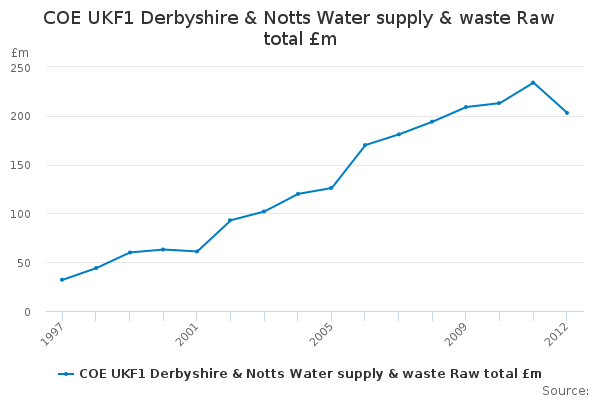 Download this time seriesCOE UKF1 Derbyshire & Notts Water supply & waste Raw total £m