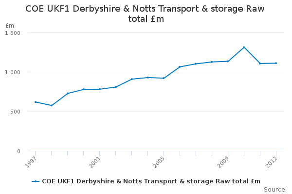 Download this time seriesCOE UKF1 Derbyshire & Notts Transport & storage Raw total £m