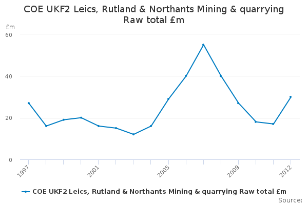Download this time seriesCOE UKF2 Leics, Rutland & Northants Mining & quarrying Raw total £m