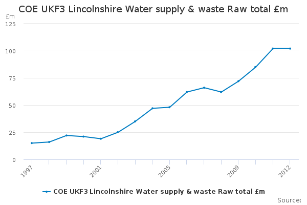 Download this time seriesCOE UKF3 Lincolnshire Water supply & waste Raw total £m
