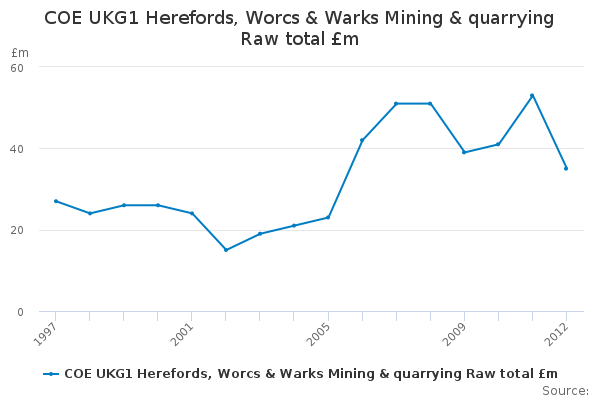 Download this time seriesCOE UKG1 Herefords, Worcs & Warks Mining & quarrying Raw total £m