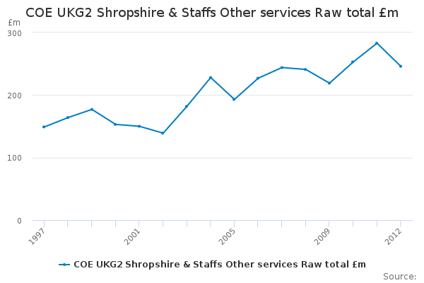 Download this time seriesCOE UKG2 Shropshire & Staffs Other services Raw total £m
