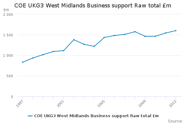 Download this time seriesCOE UKG3 West Midlands Business support Raw total £m