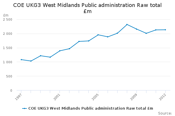Download this time seriesCOE UKG3 West Midlands Public administration Raw total £m