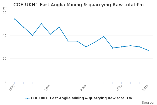 Download this time seriesCOE UKH1 East Anglia Mining & quarrying Raw total £m
