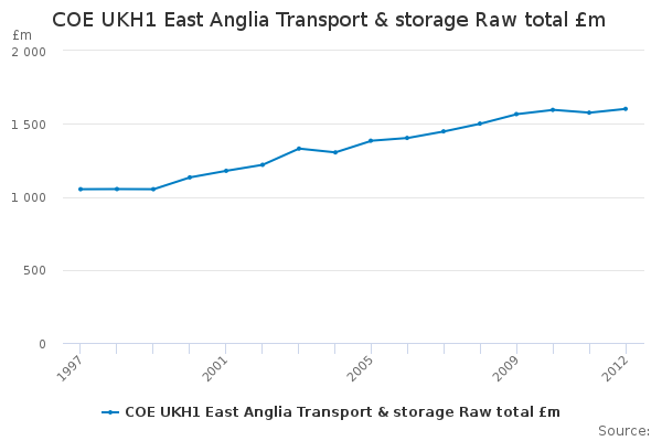 Download this time seriesCOE UKH1 East Anglia Transport & storage Raw total £m
