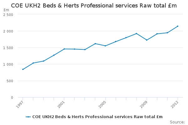 Download this time seriesCOE UKH2 Beds & Herts Professional services Raw total £m