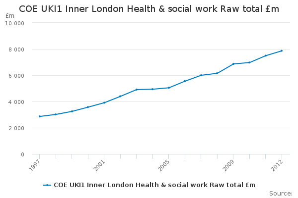 Download this time seriesCOE UKI1 Inner London Health & social work Raw total £m
