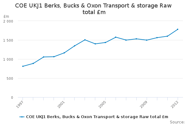 Download this time seriesCOE UKJ1 Berks, Bucks & Oxon Transport & storage Raw total £m
