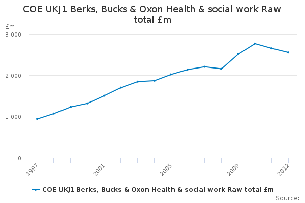 Download this time seriesCOE UKJ1 Berks, Bucks & Oxon Health & social work Raw total £m