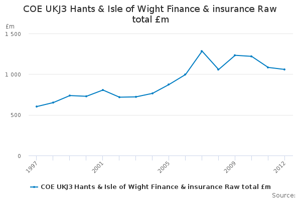Download this time seriesCOE UKJ3 Hants & Isle of Wight Finance & insurance Raw total £m