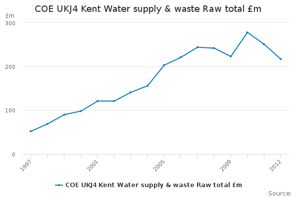 Download this time seriesCOE UKJ4 Kent Water supply & waste Raw total £m
