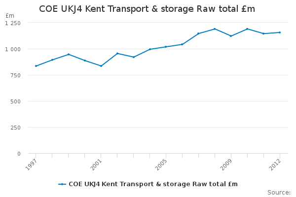 Download this time seriesCOE UKJ4 Kent Transport & storage Raw total £m