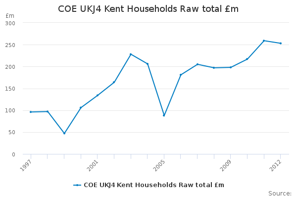 Download this time seriesCOE UKJ4 Kent Households Raw total £m