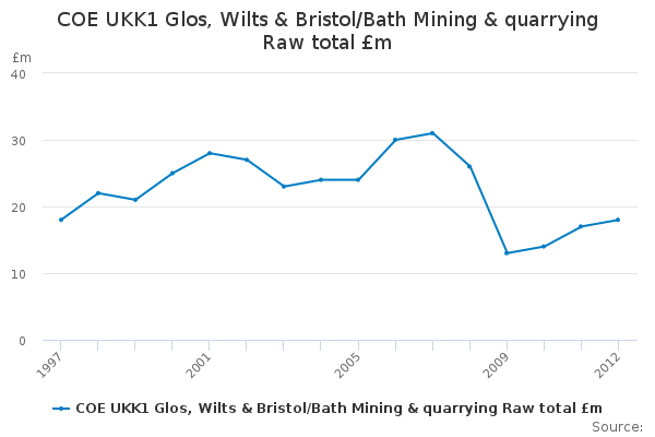 Download this time seriesCOE UKK1 Glos, Wilts & Bristol/Bath Mining & quarrying Raw total £m