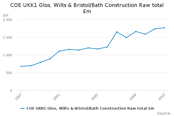 Download this time seriesCOE UKK1 Glos, Wilts & Bristol/Bath Construction Raw total £m