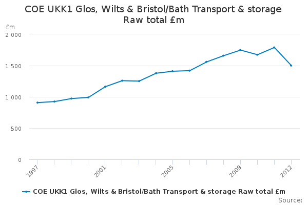 Download this time seriesCOE UKK1 Glos, Wilts & Bristol/Bath Transport & storage Raw total £m