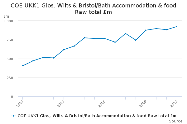 Download this time seriesCOE UKK1 Glos, Wilts & Bristol/Bath Accommodation & food Raw total £m