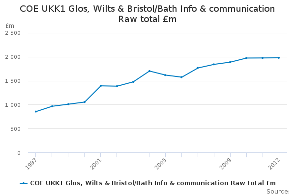 Download this time seriesCOE UKK1 Glos, Wilts & Bristol/Bath Info & communication Raw total £m
