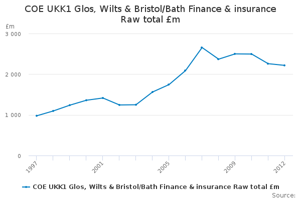Download this time seriesCOE UKK1 Glos, Wilts & Bristol/Bath Finance & insurance Raw total £m