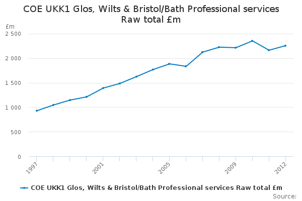 Download this time seriesCOE UKK1 Glos, Wilts & Bristol/Bath Professional services Raw total £m