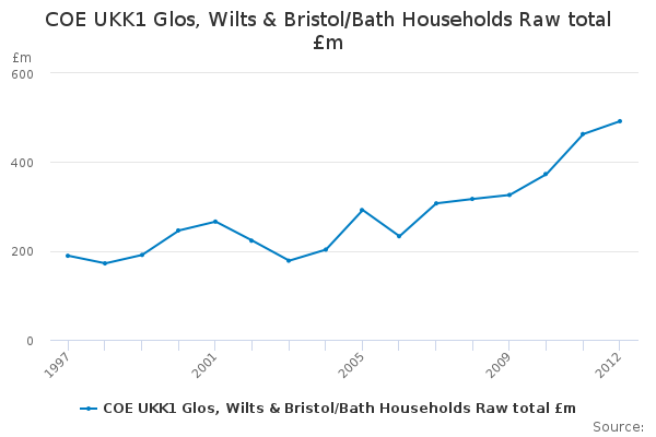 Download this time seriesCOE UKK1 Glos, Wilts & Bristol/Bath Households Raw total £m