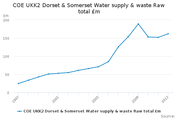Download this time seriesCOE UKK2 Dorset & Somerset Water supply & waste Raw total £m