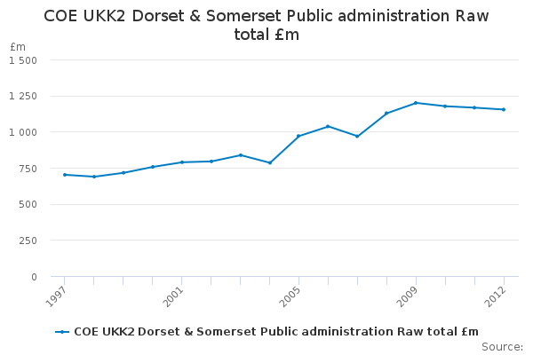 Download this time seriesCOE UKK2 Dorset & Somerset Public administration Raw total £m