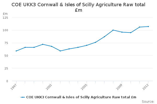 Download this time seriesCOE UKK3 Cornwall & Isles of Scilly Agriculture Raw total £m